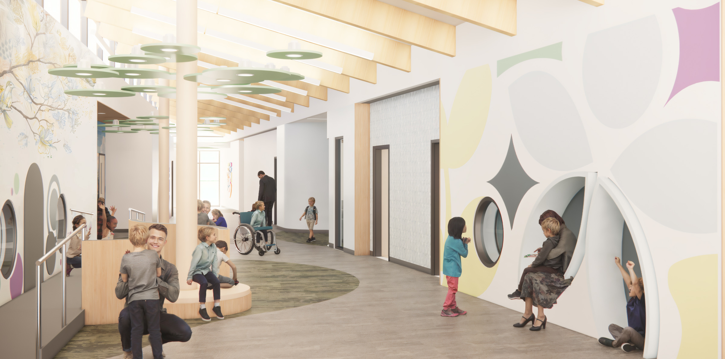 Bal Swan’s focus on neuroinclusive environments and individualized therapeutic and educational supports drove the design for spaces to be both specialized and flexible. The entire site and building were designed to promote cognitive, emotional, and sensory wellness. With the understanding that a higher-than-average student population would be neurodivergent, careful consideration was given to transition areas, types of stimuli, social balance, and cognitive load to benefit those who would occupy the space.