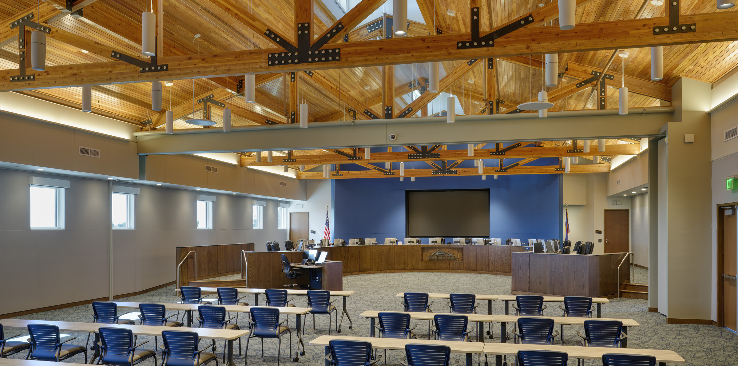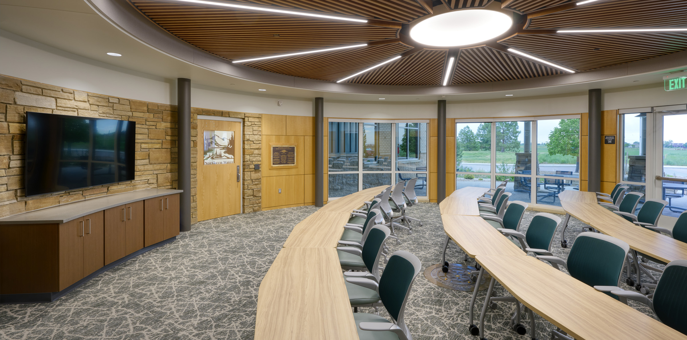 Following up to the initial Master Plan and Phase I of its implementation, the scope of the second phase of the Northern Water Berthoud Campus Expansion extensively renovates the primary office building on the campus, reconfigures its board room, adds a new secure lobby, and a three-story office wing. It also expands parking areas and demonstration gardens.